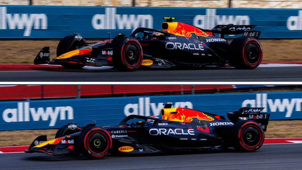 アメリカGPの金曜日、フリー走行(FP1)とスプリント予選の時点で確認できたマシンの仕様から、角田裕毅とマックス・フェルスタッペンが駆るRB21の違いを比較してみよう。