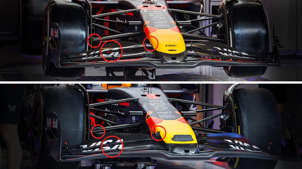 - フロントウィング:角田は旧型、フェルスタッペンは新型使用か
