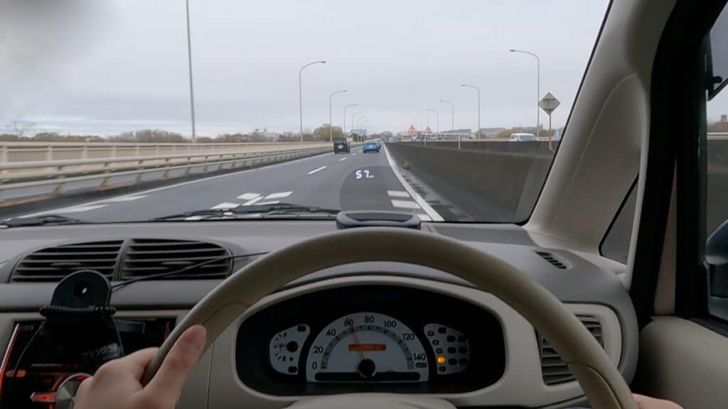 不思議な奥行きがあり、 後付け感がほぼゼロ。HUDとはこういうものか! と感動を覚えるレベルだ。