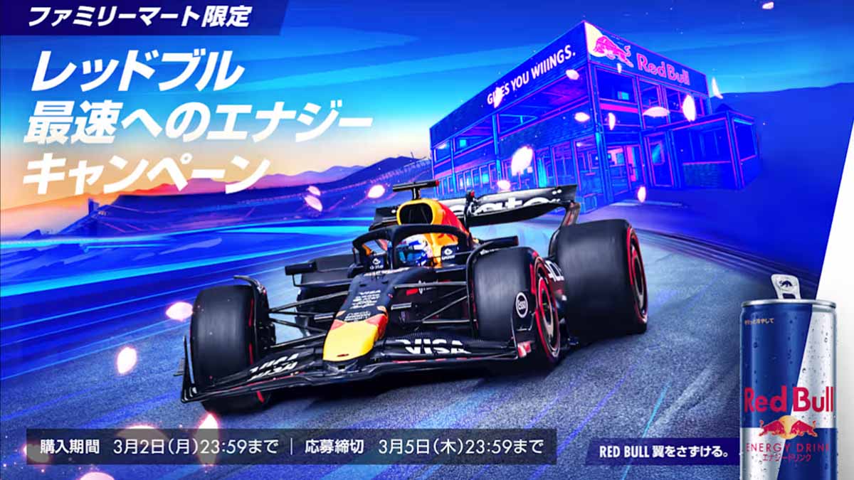 2026年のF1シーズン開幕を前に、レッドブルがファン参加型の大型企画「最速へのエナジー。」をスタート。その第1弾として、ファミリーマート限定キャンペーンが2月17日〜3月2日まで実施されている。