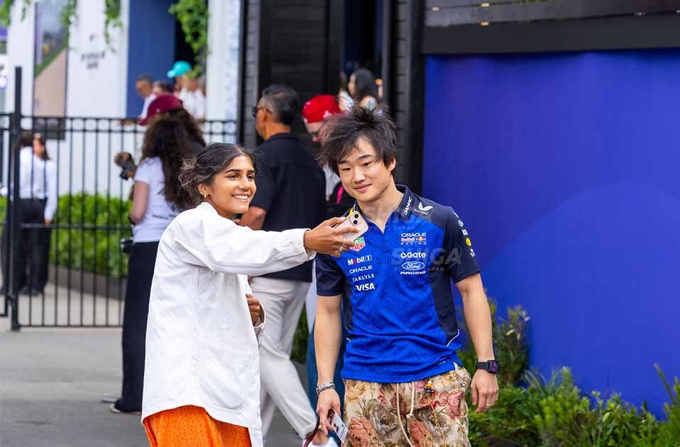 その後も角田は関係者やファンと気さくに交流し、リラックスした雰囲気で週末をスタートさせた。