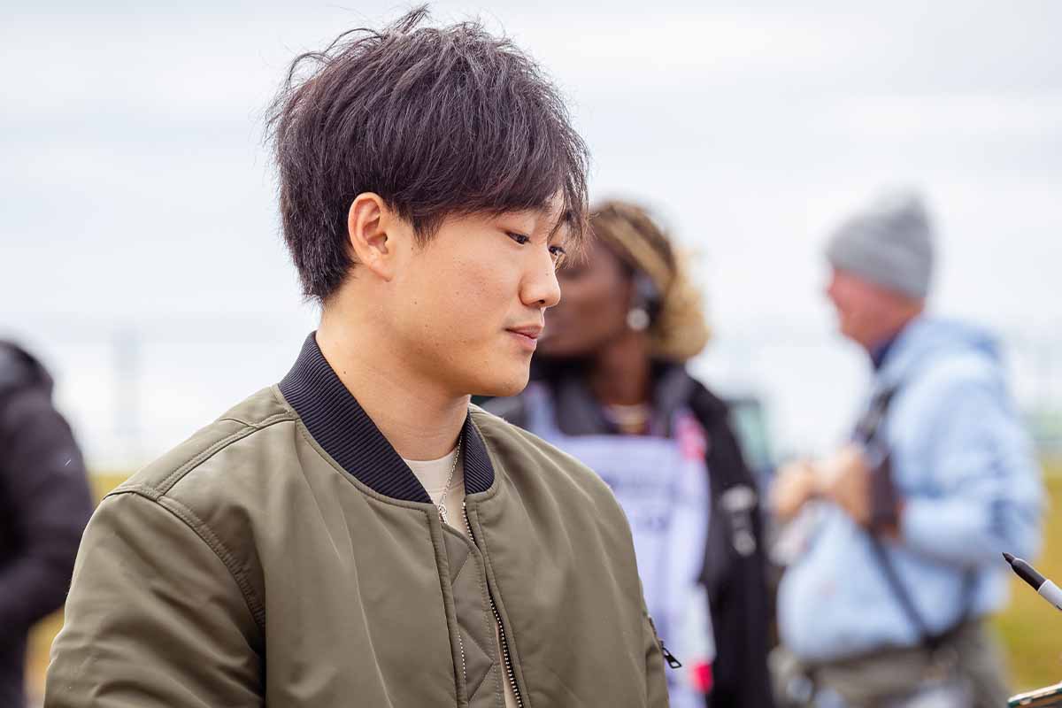グリッド内でもお洒落好きとして知られる角田。ニューヨークで行われた映画『F1®/エフワン』の試写会では、かなりオーバーサイズなスーツスタイルを披露し注目を集めた。今回のイベントではそのイメージとは対照的に、体にフィットした洗練されたブラックスーツを身にまとい、印象を大きく変えていた。