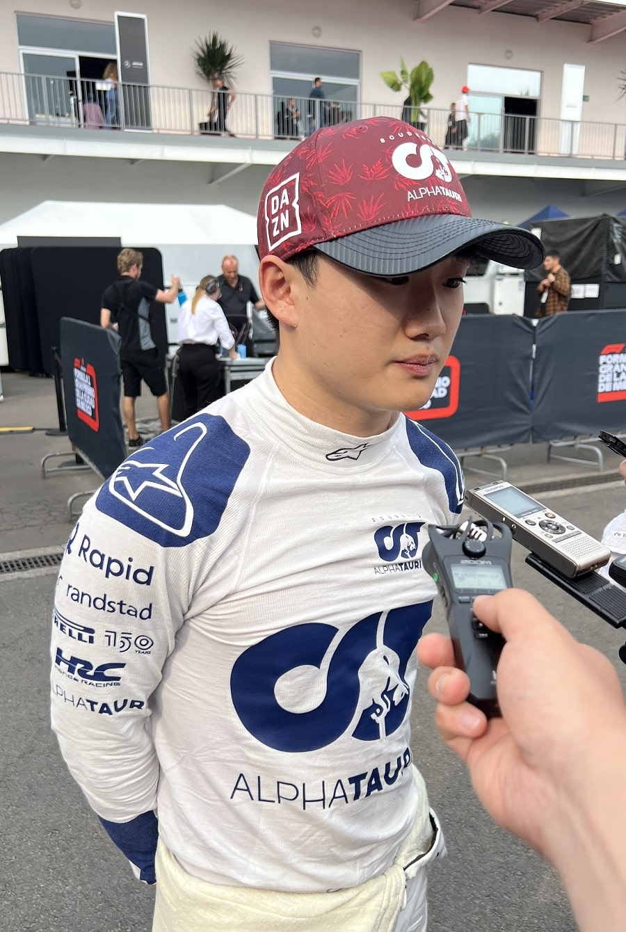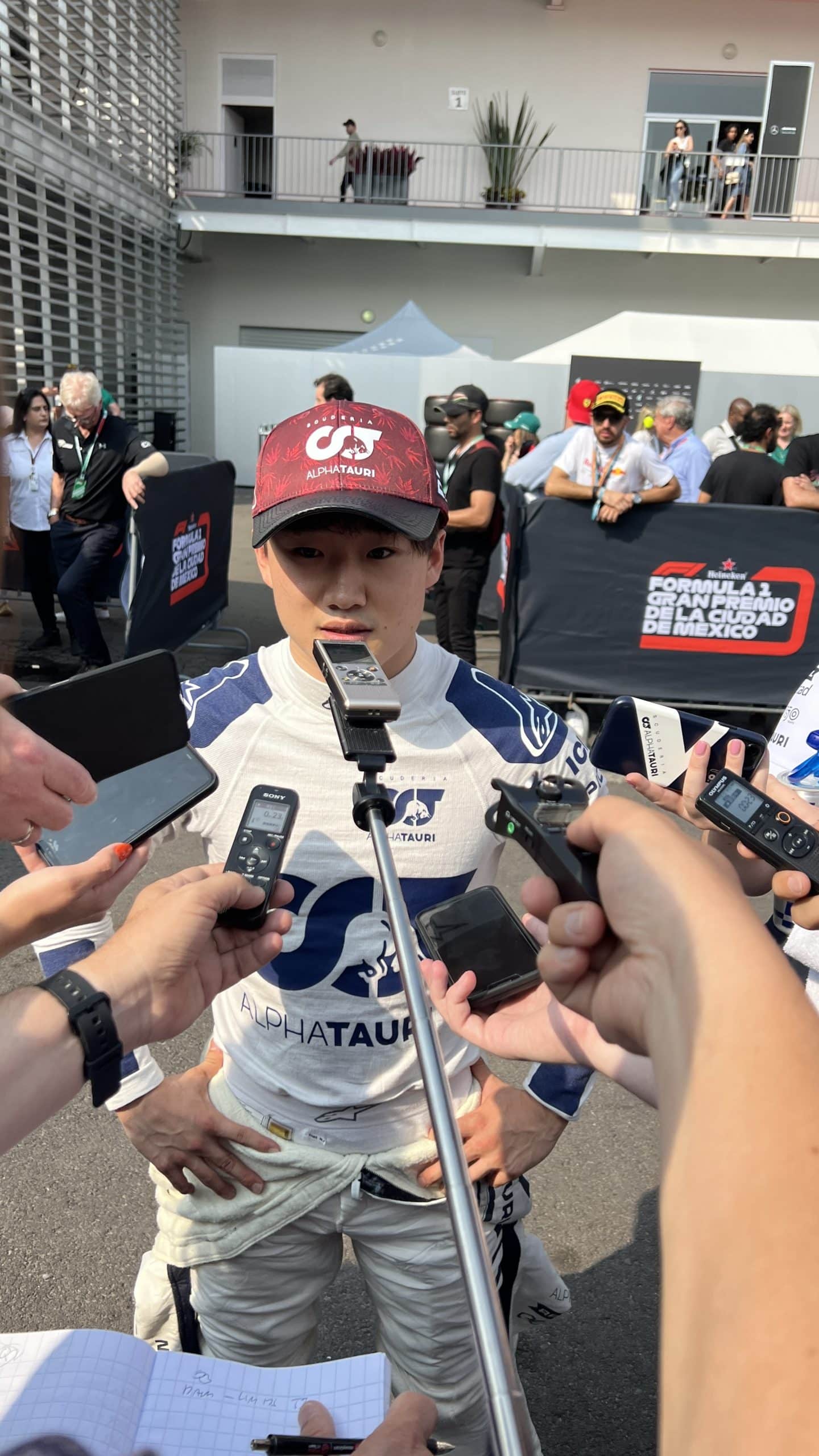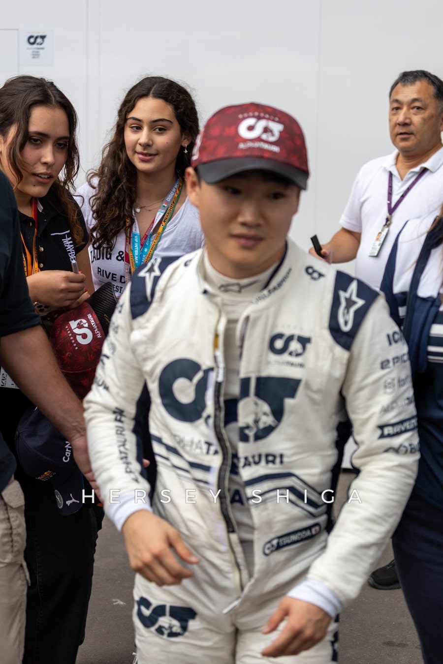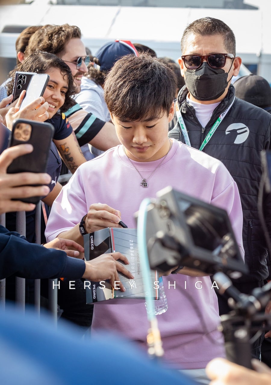 日曜日、ドライバーたちのセキュリティは強化されていました。特にパドック内での一部ファンのマナーに欠ける行動はドライバーから苦情が来ていたよう。とはいえ、それでも多くのファンがドライバーにサインを求めており、歩くのも困難な状況は変わりません。そういった理由もあり、角田裕毅は9時前のかなり早い時間に入場。残念ながら私たちハーシー・シガも角田の入場を逃すことに。