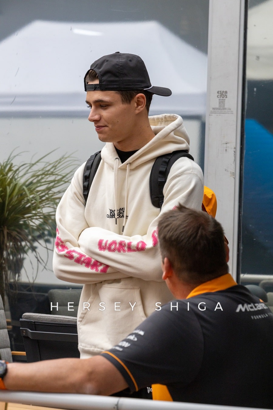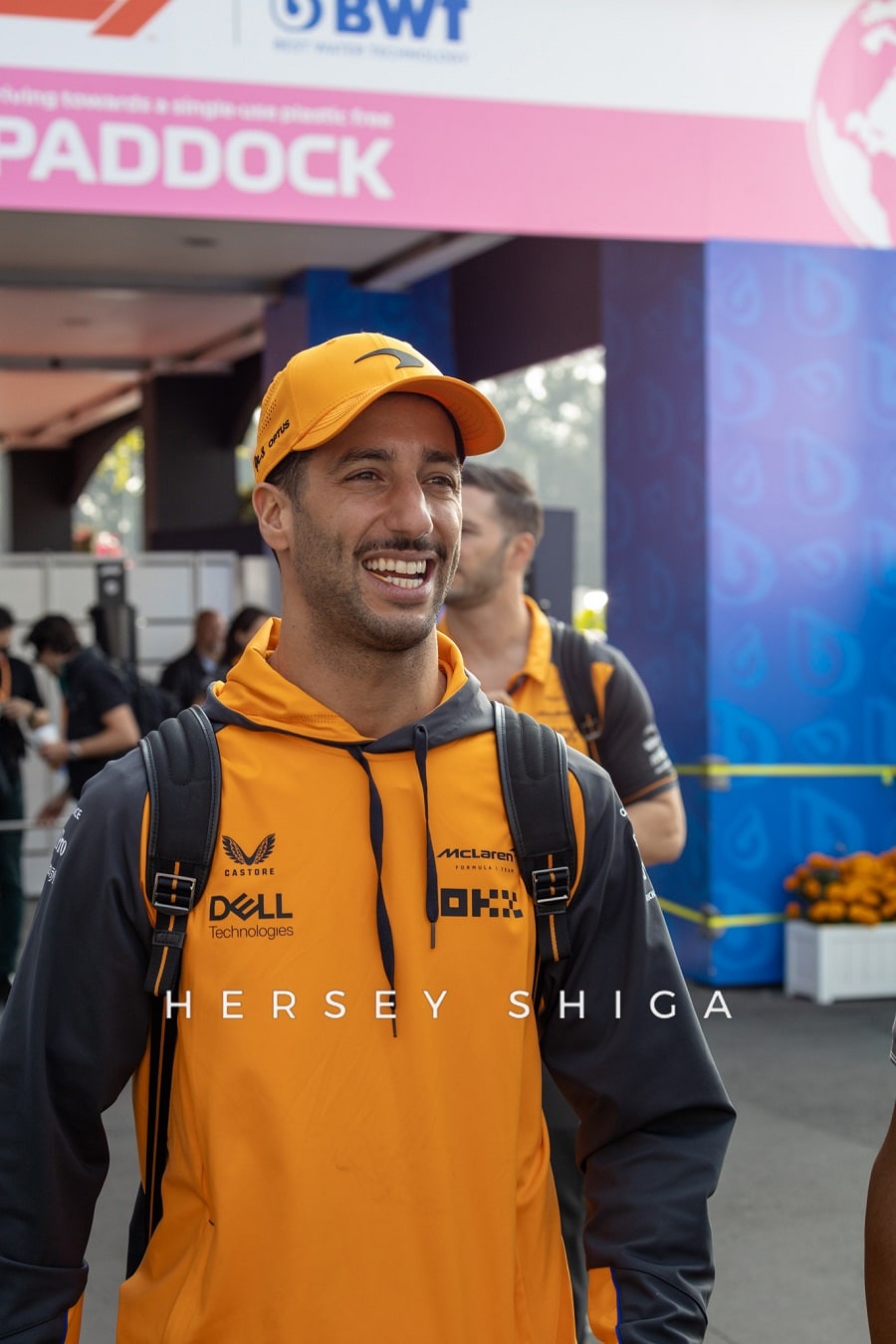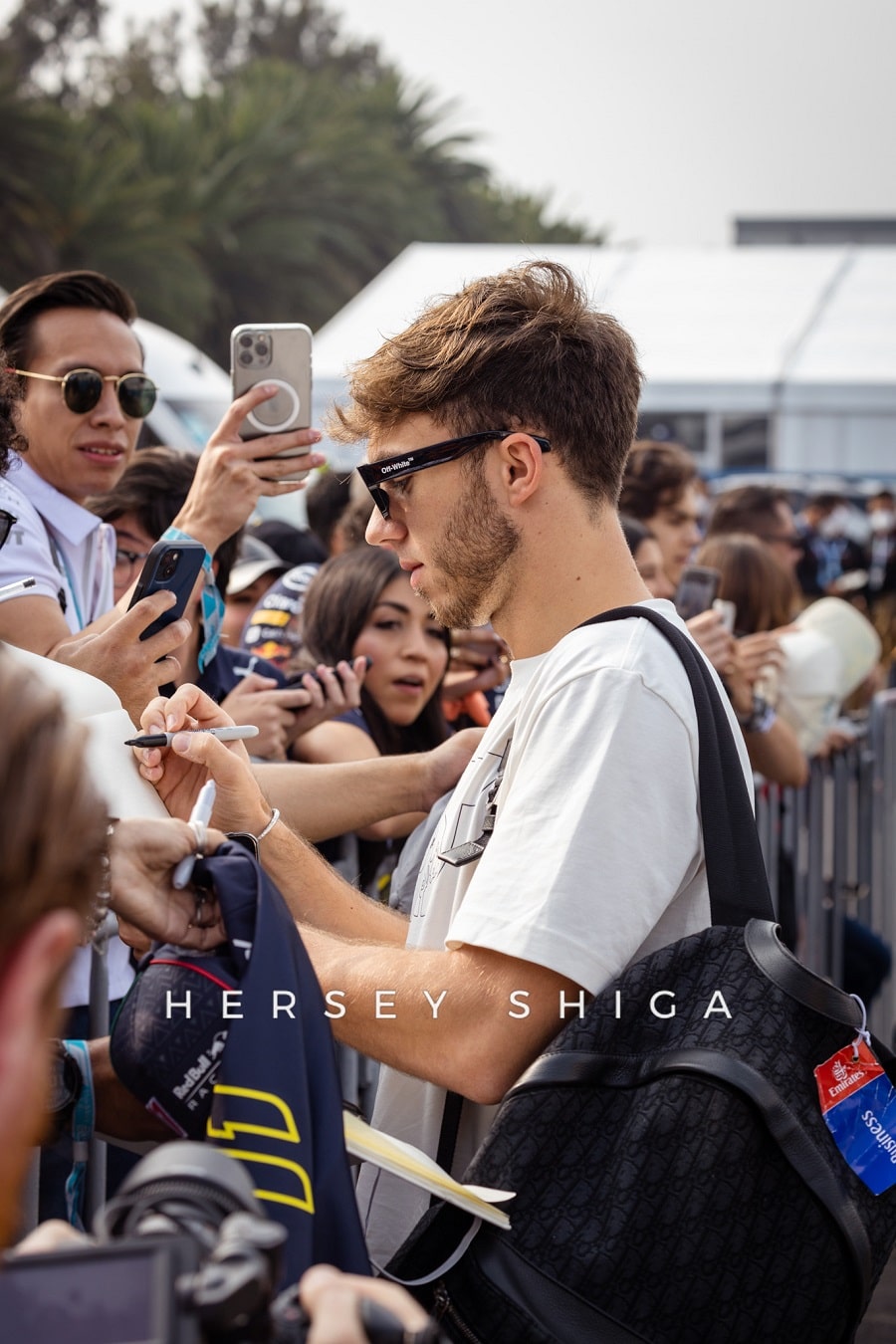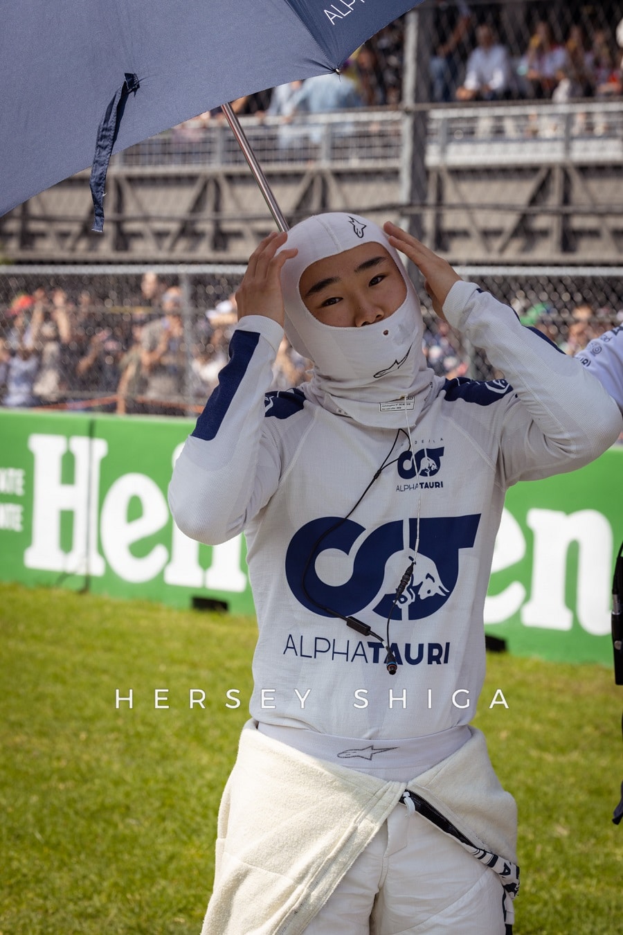 日曜日、ドライバーたちのセキュリティは強化されていました。特にパドック内での一部ファンのマナーに欠ける行動はドライバーから苦情が来ていたよう。とはいえ、それでも多くのファンがドライバーにサインを求めており、歩くのも困難な状況は変わりません。そういった理由もあり、角田裕毅は9時前のかなり早い時間に入場。残念ながら私たちハーシー・シガも角田の入場を逃すことに。