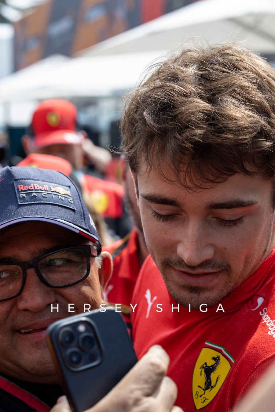 いつものように朝早くからドライバーの到着を待ち構えるファンたちが最高の雰囲気を作り上げます。激しい人混みとなり、ドライバーが安全にパドックに入れるよう、セキュリティがゲートの外に新たに柵を設置したものの、パドックの中はそれ以上の人混みとなり混乱した状況に。ドライバーが到着する度に、VIPパスを持ったゲストたちが集結してサインをお願いすることとなり、特に人気のあるドライバーはファンに囲まれて身動きするのも困難に。シャルル・ルクレールの表情が状況を物語っています。ボディ・ガードを連れているルイス・ハミルトンでさえもパドックの中では移動に苦労するほど。