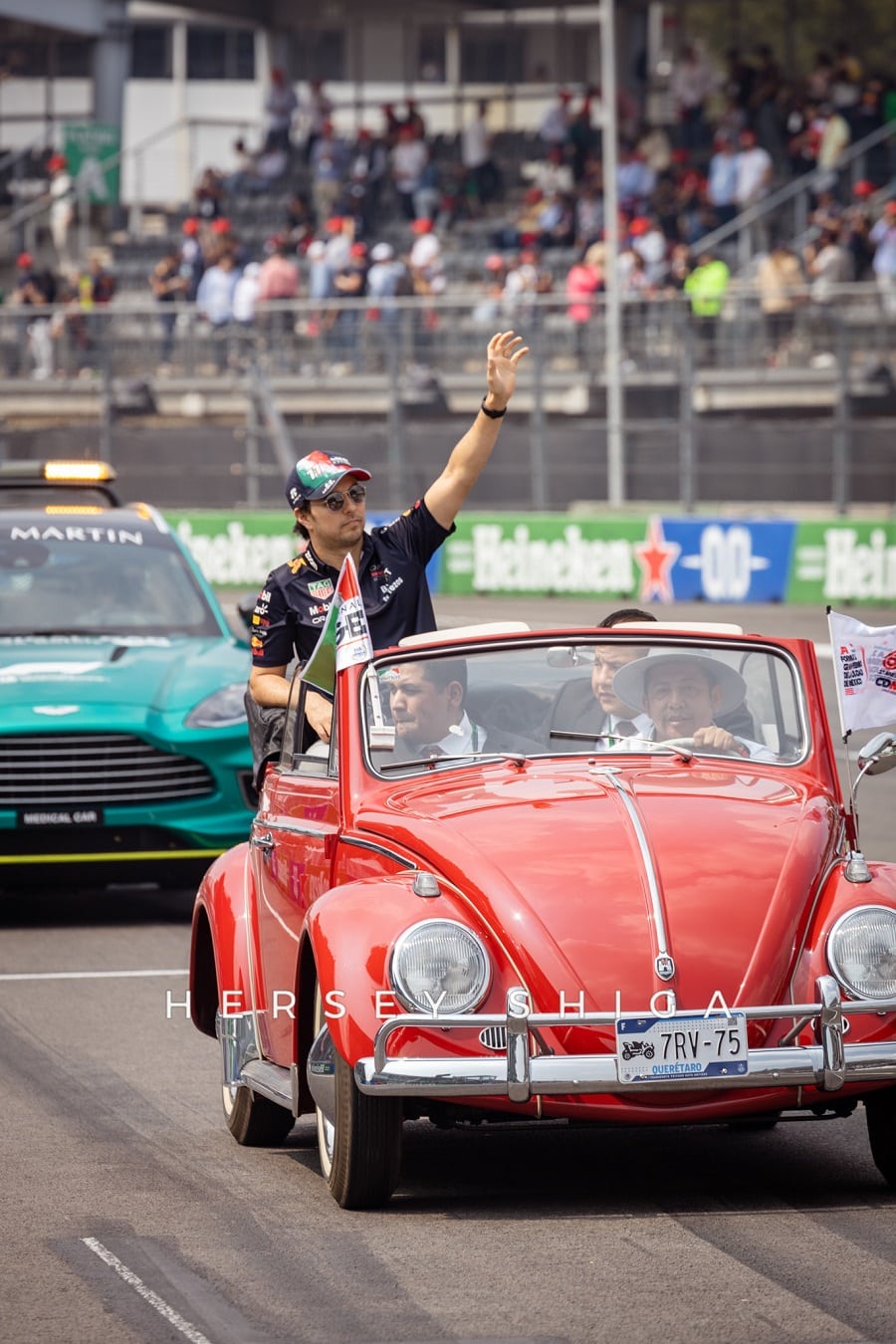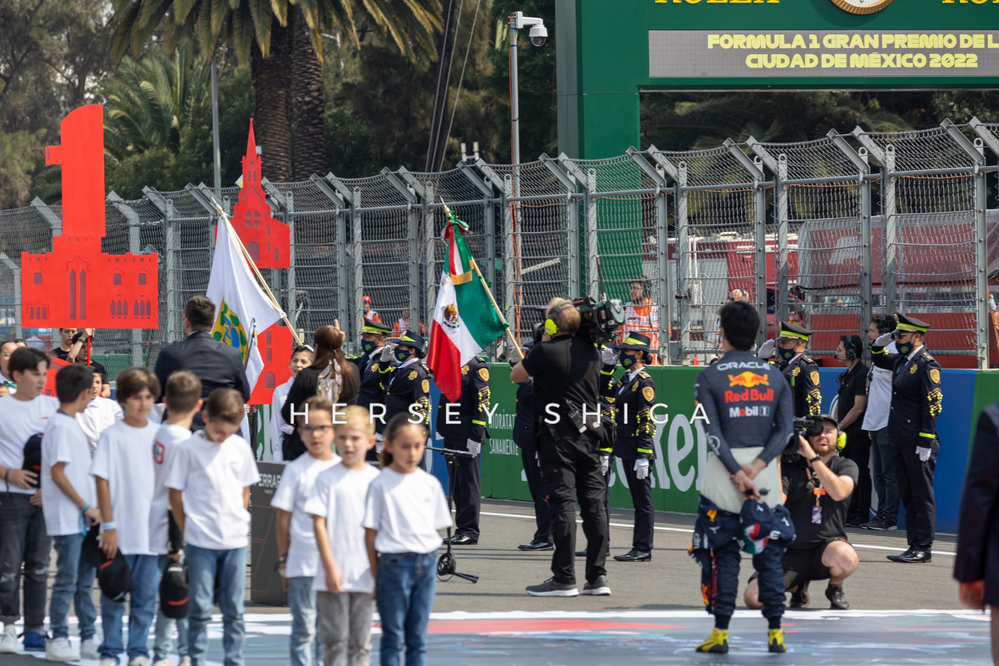 私たちハーシー・シガはメキシコGPでも3レース連続で権威あるグリッドウォークへの取材が許可されました。F1を取材するメディアとして嬉しい限りです。決勝前セレモニーでVIPやドライバーが集結する場面でも、レース直前の車やドライバーたちを近くから取材することができました。そして、メキシコGP決勝レースも期待通りのエキサイティングなレースに。